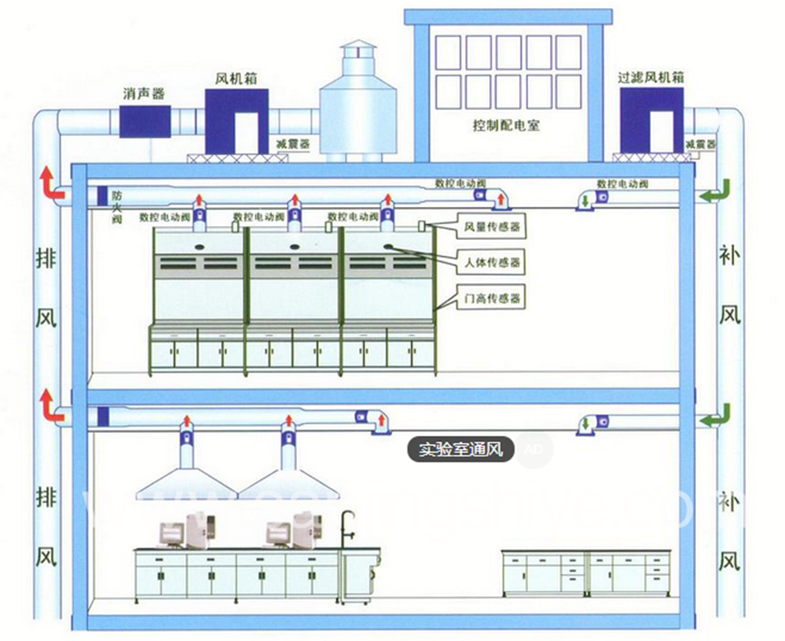 ⊙通風(fēng)系統(tǒng)工程是潔凈間建設(shè)的關(guān)鍵,通風(fēng)柜的效果好壞主要在于排風(fēng)系統(tǒng)設(shè)計。