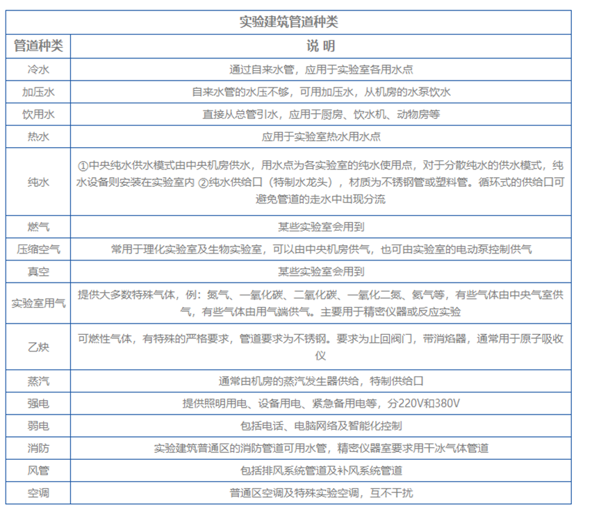 一、實(shí)驗(yàn)室建筑常見的管道種類